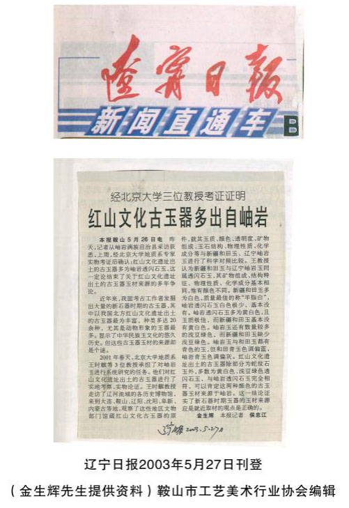 关于红山文化遗址出土的玉器玉材来源问题的争论,在本世纪初已有定论。即红山文化遗址出土的古玉器玉材源于岫岩透闪石玉。这个结论是北京大学地质学院王时麒、段体玉等三位教授,对岫岩玉经过三年实地考察后得岀来的定论。三位教授已向辽宁省政府、岫岩县政府提交了考察报告。2003年5月,笔者就此问题撰写的文章,在辽宁日报、辽沈晚报、辽宁经济日报、北方晨报、中囯矿业报、全国宝玉石周刋等十余家报纸发表。可是,随着时间的推移,人们对这个问题的记忆逐渐抹糊,今天的青年人也须根本就不了解这一问题真象;还有的人在有意歪曲这一定论。所以有必要再写篇文章重申红山文化遗址出土的古玉器玉料源于岫岩透闪石玉这一科学定论。